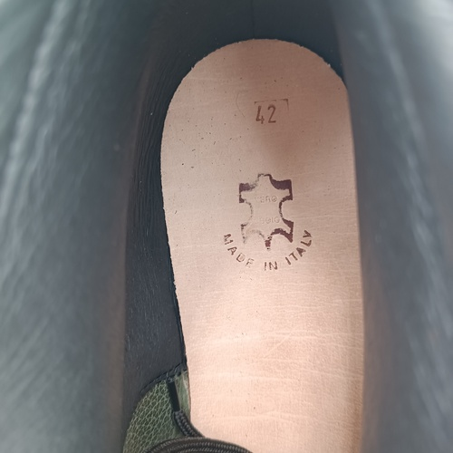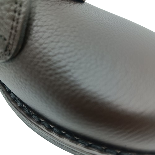 Resistente all'acqua, intersuola termica isolante, fissaggio doppia cucitura, fondo in gomma antiscivolo. Prodotto in Italia.