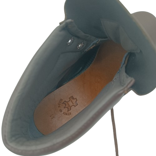 Scarpone con pellame Crazy idrorepellente ingrassato per garantire una piena traspirabilità e con uno spessore di 2.2/ 2.4 mm per avere flessibilità e comodità. Fondo in GOMMA per essere più duraturo e antiscivolo con doppia cucitura Ideal.